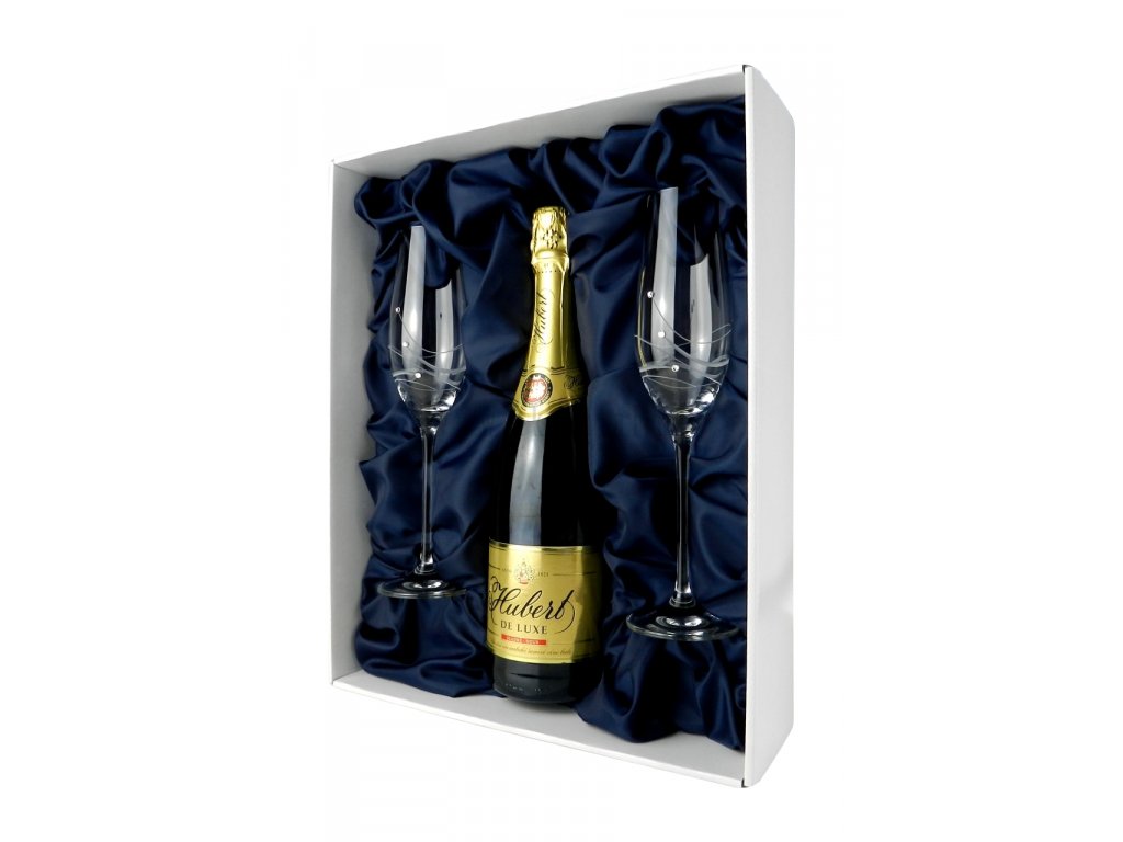 Dárkový set skleniček se Swarovski® Elements v boxu pro láhev sektu dodáváme bez sektu, prostor na láhev je vhodný pro všechny standardní typy sektových lahví.