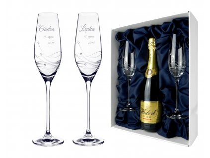 Svatební skleničky a vázy na svatební kytky pro nevěstu a ženicha se jmény a datem svatby v ceně, ozdobené originálními krystaly. Sklenice se Swarovski® Elements na svatební přípitek rozzáří svatební stůl, udělají radost novomanželům a mohou být originální, luxusní a praktický svatební dar.